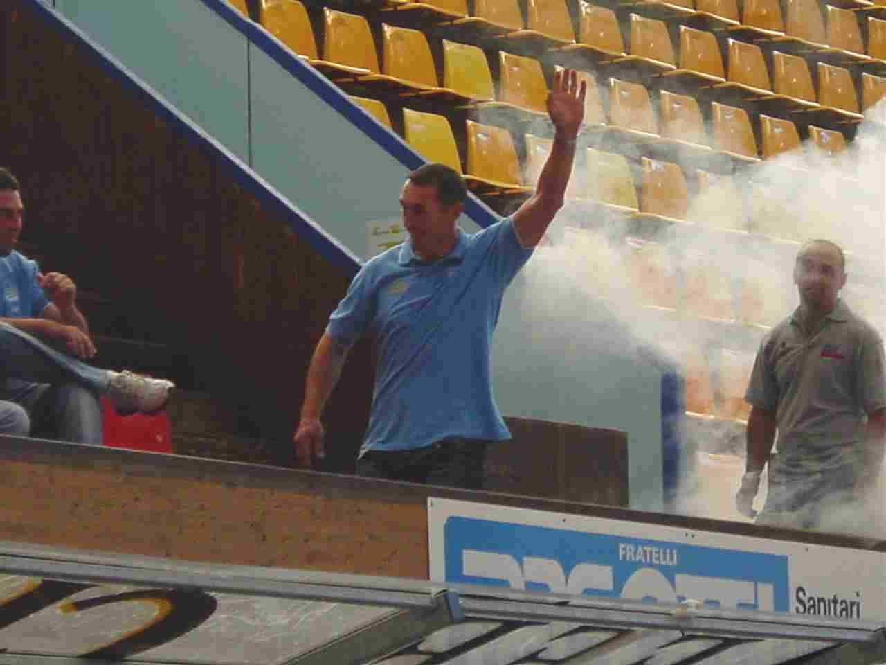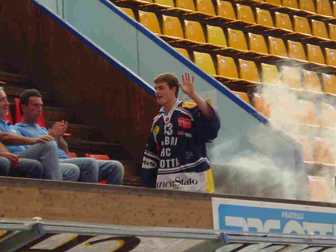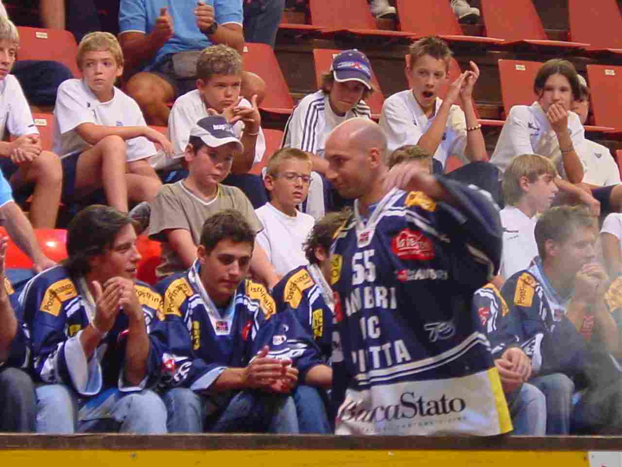 I primi ad entrare sono stati quelli che di solito non si notano mai, ma sono comunque molto importanti, il team manager – il masaggiatore – il responsabile del materiale. A partire dall’allenatore Tlacil, i tifosi presenti hanno cominciato a “scaldarsi”, accogliendo più o meno calorosamente i vari componenti della squadra. Tra tutti IL Portiere “San” Thomas Bäumle, Nick Naumenko, Hnat Domenichelli, Nicola Celio, Paolo Duca, Kutlak e Westrum.