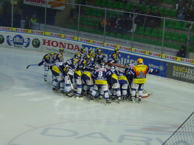 Partita pazza iniziata nel peggiore dei modi, dopo soli 21 secondi siamo già sullo 0-1, rete di Della Rossa. Al secondo minuto esatto e 4 secondi di inferiorità siamo già sullo 0-2 rete di Astley. Larry Huras chiama il timeout per rendere attenti i giocatori che la partita è già iniziata. L’Ambri cerca di reagire e pian piano si fa pericolosa, poi al 5:47 in doppia superiorità una magnifica triangolazione Domenichelli-Trudel ci permette di riemergere. Passano appena 18 secondi e Demuth su assist di Pont fulmina Manzato, 2-2 !! incredibile. La partita si vivacizza, i nostri cercano di approfittarne, ma niente. Anzi è ancora il Basilea che in contropiede sull’asse Maneluk-Bright-Divisek permette a quest’ultimo di segnare il 3-2 tutto solo davanti a Thomas. Sono passati solo 3 minuti dal pareggio. I basilesi sono pericolosi ogni qualvolta arrivano dalle parti di un insicuro Thomas. Nel secondo tempo gli ospiti cercano con mestiere di gestire il risultato. Al 26mo è però Domenichelli che insacca il 3-3 in mischia. Il livello del gioco non si eleva più di quel tanto, e di certo non aiutano i due linesmann che ne combinano peggio di Bertoldo. Terzo tempo che inizia in salita, al 43mo è ancora Della Rossa che aggira la porta di Thomas, dopo errore difensivo, per infilare il provvisorio 3-4 ! Tutto da rifare. L’Ambri preme alla disperata ricerca della rete, ma le idee sono poche, i soli stranieri sono pericolosi. Una su tutte la super paratona in spaccata di Manzato su tiro di Domenichelli. Al 58:23 ecco l’occasione, una superiorità, Larry cambia come suo solito il portiere per avere un timeout supplementare, alla prima occasione Lüdke esce per far spazio ad un sesto giocatore, a 20 secondi dalla sirena è Somervuori che segna in mischia, 4-4 !! si va all’overtime.