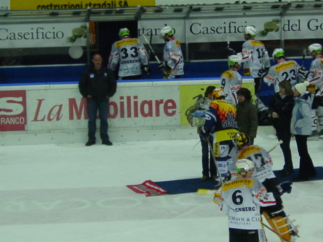 Forse il risultato è un tantino pesante per i basilesi, anche se la differenza la si è vista. Comunque nel primo tempo, il peggiore, hanno sfiorato più volte la rete del vantaggio, una grande come una casa in inferiorità numerica e sciupata dal topscorer Papineau. Per il resto i nostri hanno iniziato con prudenza temendo forse il gioco duro, che in effetti non c’è stato. Il secondo tempo lo iniziamo a 5c3 e dopo appena dodici secondi Duca realizza su assist di Stirnimann. I nostri prendono fiducia e spingono maggiormente. Qualche svarione ci tiene sulle spine. Al 26:41, ancora Duca, vestito da topscorer, realizza la sua seconda rete. Potrebbe segnarne una terza su rigore, fischiato per un fallo su Christen, ma al momento buono perde il disco. Anche al Basilea viene concesso un rigore, ma Thomas lo para alla grande. Il terzo periodo vede i nostri controllare abbastanza bene. Al 45 è Siritsa a realizzare il 3-0 con un tiro sott’asta. I basilesi accusano il colpo e non riescono a reagire, salvo rare eccezioni. Quasi al 50mo in 5c4 è Du Bois a realizzare il 4-0 ben servito da Sonnenberg dopo gran lavoro di regia di Naumenko. A questo punto il Basilea sparisce dalla scena, ed i nostri senza troppo forzare realizzano ancora con Schönenberger (doppietta) e Christen.