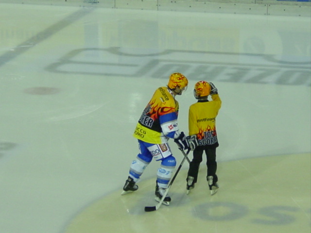 Migliore in pista, a parte Bäumle che ancora una volta ha salvato la baracca più volte con interventi strepitosi (vedi rigore “in tuffo”), il 38enne nonno Micheli che, gol a parte, riusciva con la sua linea a far girare il disco da bastone a bastone con i suoi compagni di linea e non solo lungo le assi
