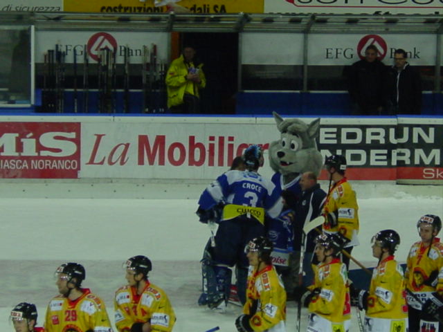 Primo tempo si apre col Langnau a premere e sfiorare la rete in un paio d’occasioni. Poi come detto il rigore fallito da Westrum quando il più era stato fatto… da quel momento anche l’Ambri ha iniziato a giocare e farsi pericoloso dalle parti di Schoder. Il tempo si chiude sullo 0-0. In apertura di periodo ecco che Toms colpisce inavvertitamente Walker al volto, 5′ e pp per lui. I nostri stentano ad ingranare il power-play. Poi a metà della superiorità è Duca che su suggerimento di Nicola Celio, insacca al volo da due passi, 1-0. Una penalità di Stirnimann ci permette di testare il box-play. Sul finire del periodo ai tigrotti cedono i nervi, e capitan Sutter si becca un 10′ col rischio di penalità di partita. Terzo periodo sulla falsa riga del secondo, con occasioni da rete sui due fronti. Ma forse al Langnau cominciano a mancare forza e lucidità, ed in effetti grossi rischi Croce non ne corre. A poco più di un minuto dal termine, Weber chiama il timeout e toglie il portiere, Micheli Westrum e Clarke hanno l’occasione per segnare a porta vuota. A 40 secondi dal termine Joggi compie un fallo pericoloso alla transenna ai danni di Clarke. La partita si conclude con una “bagarre* tra diversi giocatori, con Beltrametti che corre verso Croce ad abbracciarlo. Piroletta d’obbligo per Croce a festeggiare l’evento.