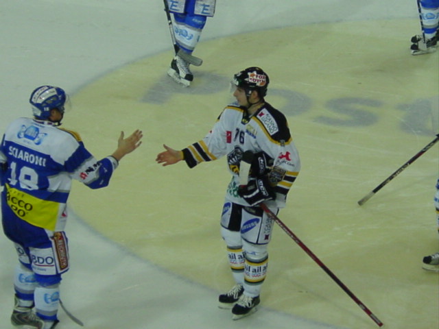 Ultimi 40 secondi dei tempi regolamentari ed inizio di overtime in powerplay senza esito. a pochi istanti dal termine una grossa occasione in due contro uno non sfruttata da Stirnimann ci port ai rigori, dove segnano Clarke e Naumenko per noi, Näser, Nummelin e Domenichelli per i bianconeri.