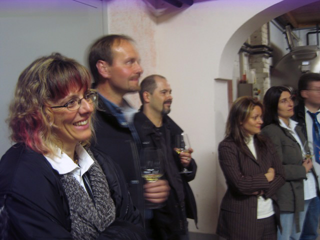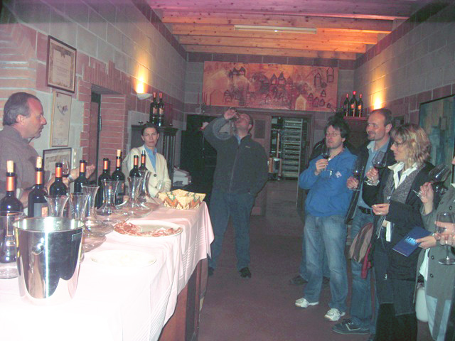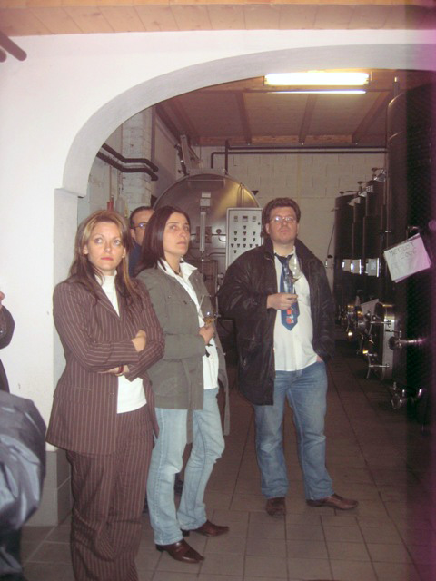 Facciamo e finiamo il giro della cantina. Due o tre irriducibili se ne fregano completamente e rimangono alla tele… Siamo sotto di un goal. Il risultato è bugiardo… Vabbé recuperiamo… eccoci quindi li quasi tutti belli attenti alle spiegazioni del vino e tutto il resto.
