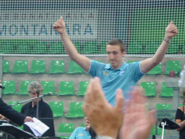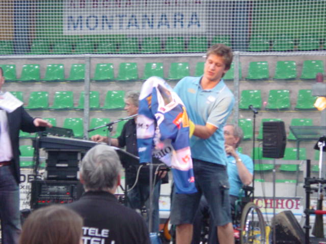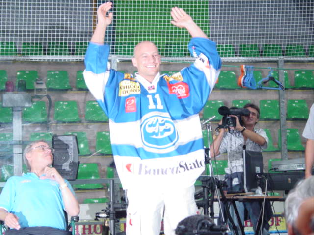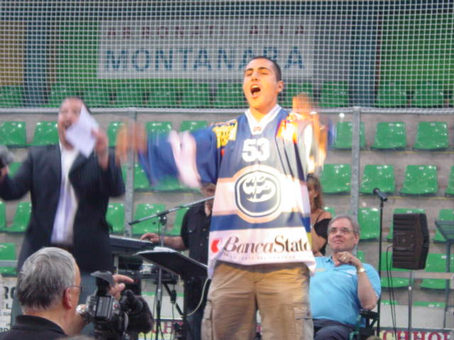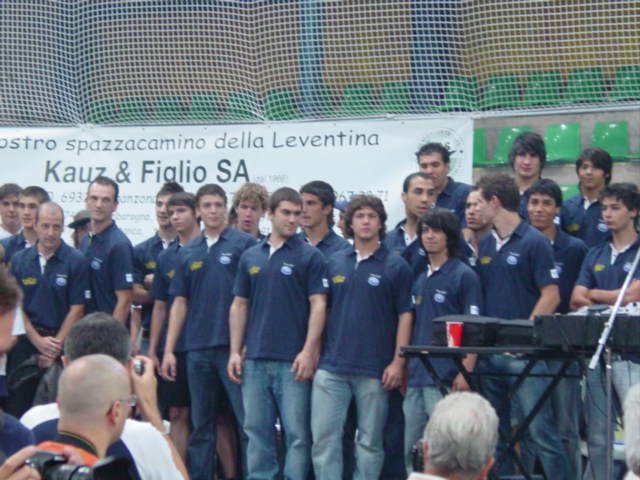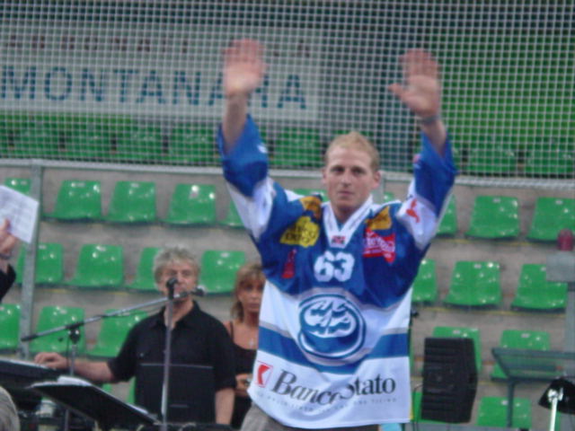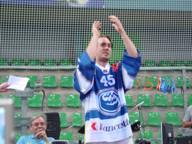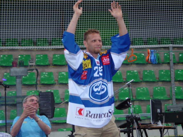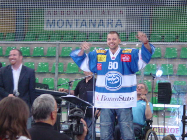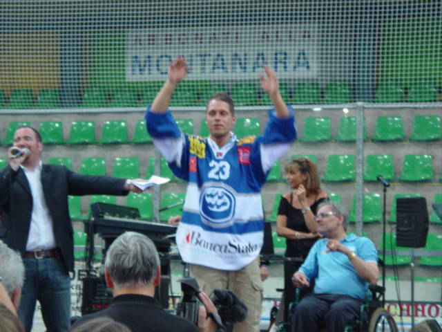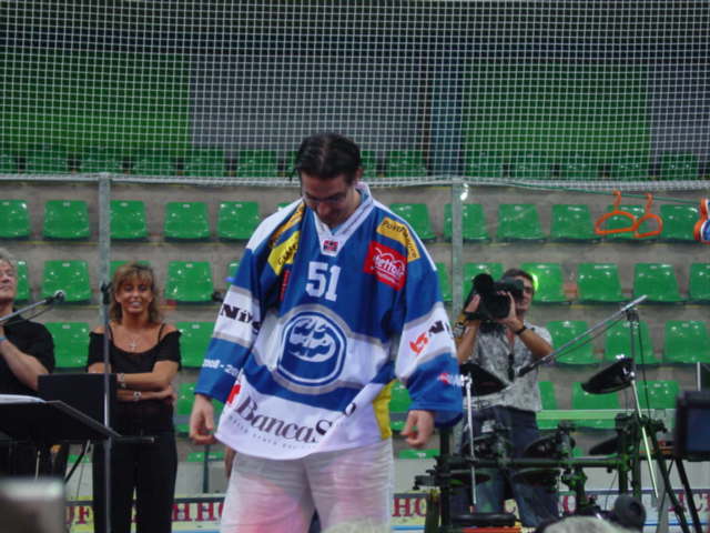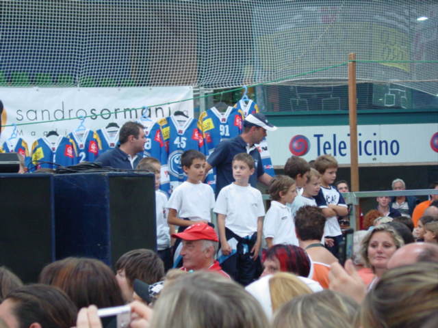 Primo a salire sul palco, dopo il settore giovanile e lo staff tecnico, l’allenatore John Harrington, il quale è rimasto stupito dal gran numero di tifosi presenti. Grande applauso è stato riservato al suo vice Luca Cereda, emozionato per l’accoglienza. Chiamato a gran voce è uscito il nostro portierone San Thomas Bäumle. Poi via via sono saliti i volti già noti. Tutti accolti calorosamente.